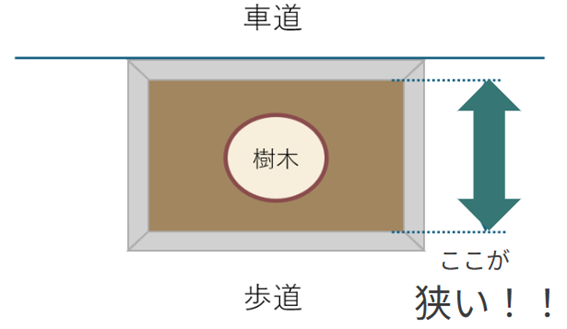 樹木が植わっている「植樹桝」の大きさが小さいことが一つの原因だとわかりました!!
